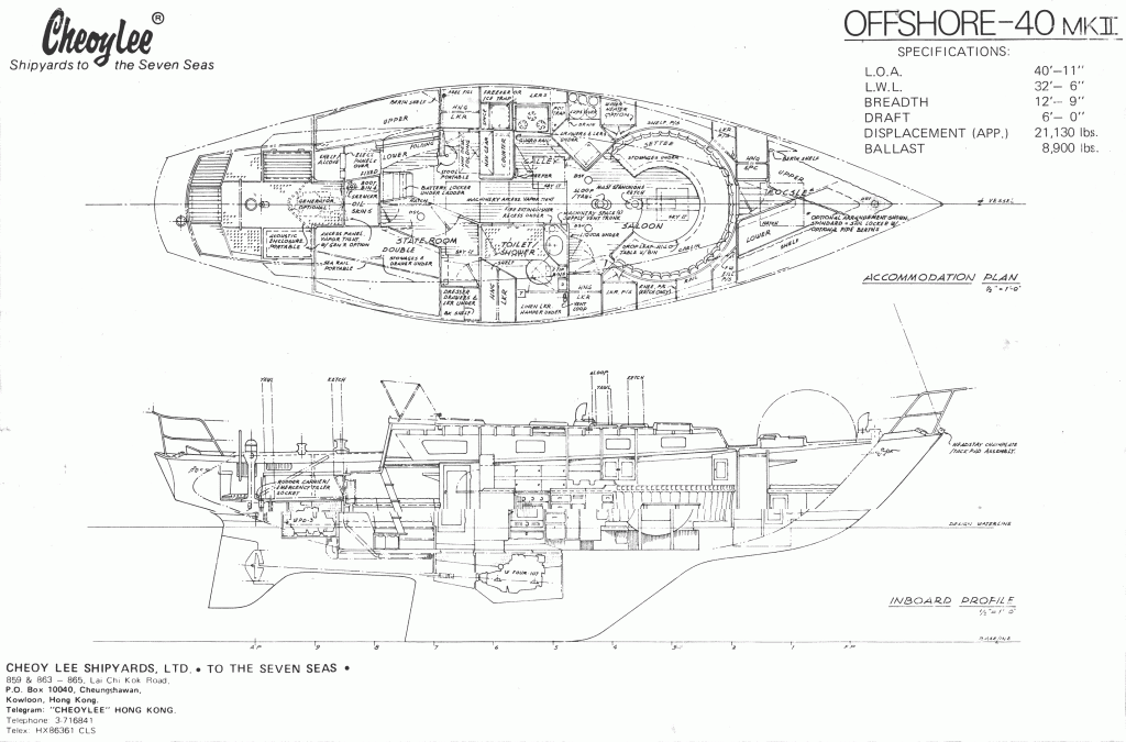 About Argus VESSEL INFORMATION: Argus is a 1980 Cheoy Lee Offshore 41 by designer Ray Richards. Length = 40′-9″ Beam = 12′-7″ Draft = 7′-0″ Displacement = 23,000# Ballast = 8700# Gross tons = 24 Net tons = 21 Share this: Click to share on X (Opens in new window) X Click to share on Facebook (Opens in new window) Facebook Like Loading...